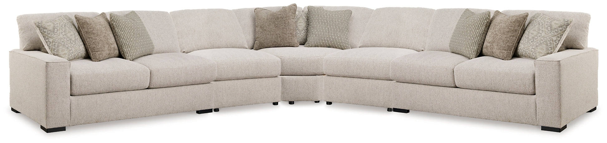 | Details | Includes 5 pieces: left-arm facing loveseat, 2 armless chairs, wedge and right-arm facing loveseat, "Left-arm" and "right-arm" describe the position of the arm when you face the piece, Corner-blocked frame, Loose reversible seat and back cushions, High-density foam cushions wrapped in feather-fiber blend jacket, Accent pillows included, Pillows with feather-fiber blend, Polyester upholstery, Exposed legs with faux wood finish, Platform foundation system resists sagging 3x better than spring system after 20,000 testing cycles by providing more even support, Smooth platform foundation maintains tight, wrinkle-free look without dips or sags that can occur over time with sinuous spring foundations | |