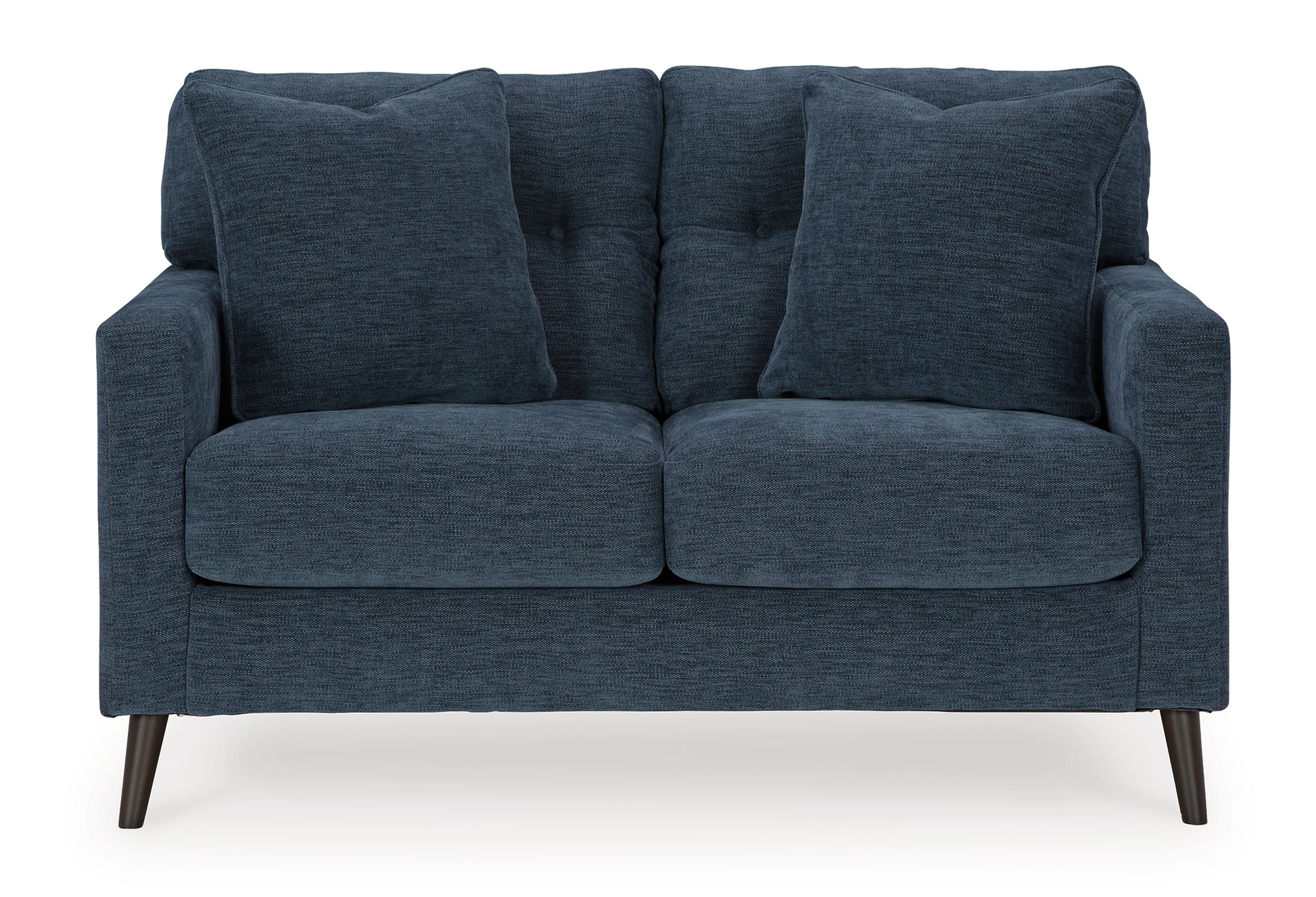 Feed your mid-century modern nostalgia—with a contemporary twist. A vibrant trend-right hue and comfy feel make this loveseat perfect for lounging solo or with friends and family. Its linear profile adds plenty of fresh style, and the tapered accent legs are a nice revival.