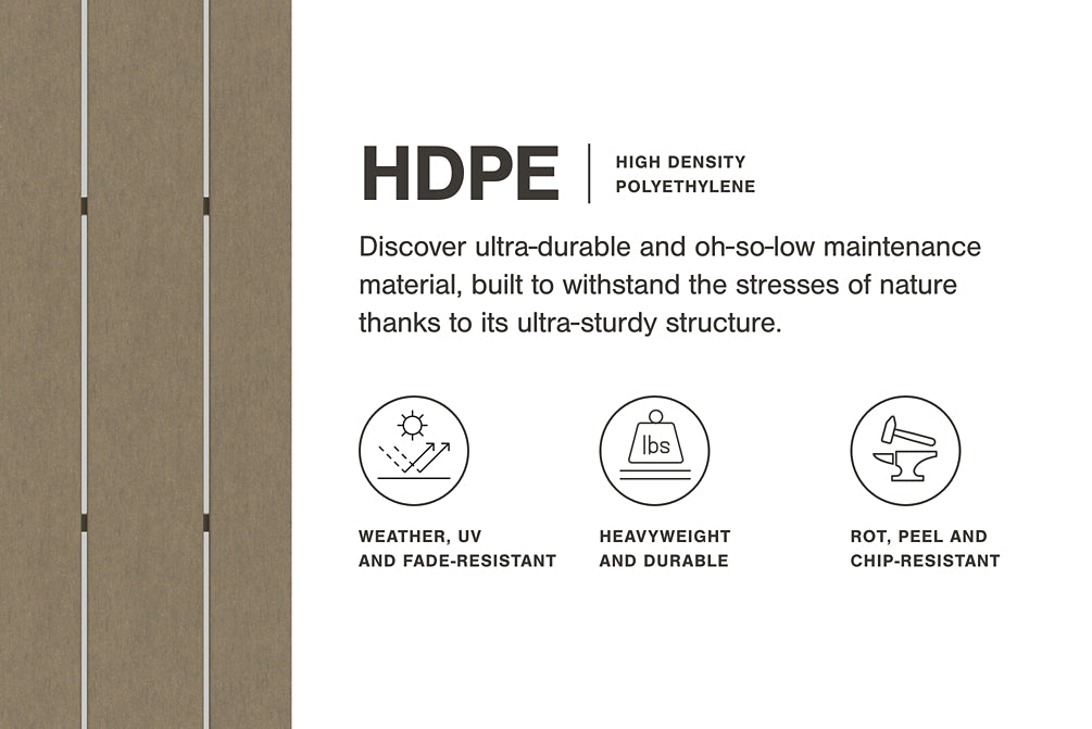 | Details | Made of MEGA-TUFF® HDPE (a high-density polyethylene), which gives the wood look you love and the weather resistance you crave, Stainless steel hardware, Designed to withstand the harsh elements of the outdoors, Slatted design, Assembly required | |
